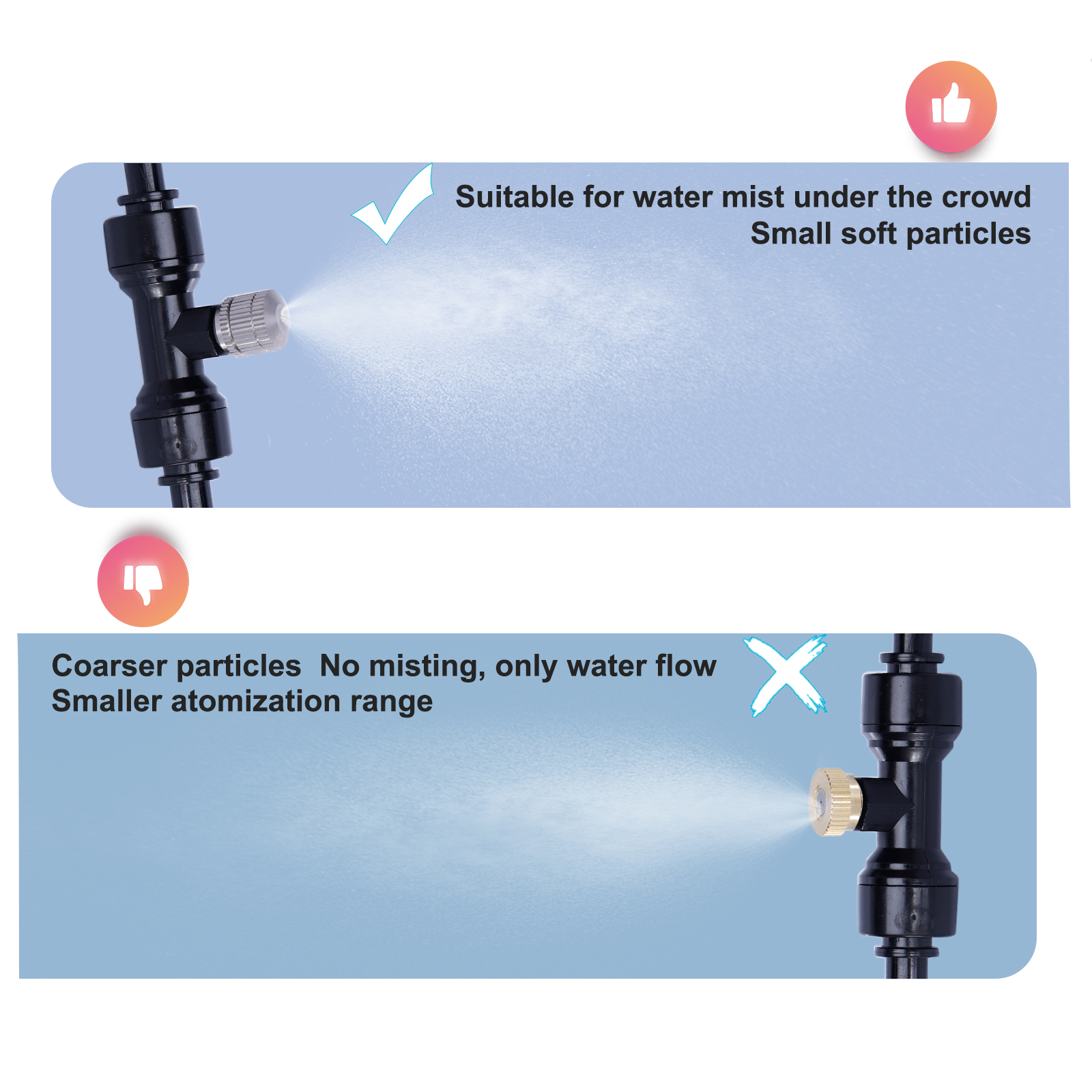 Mister nozzle very fine misting water, effectively reduce the ambient temperature.