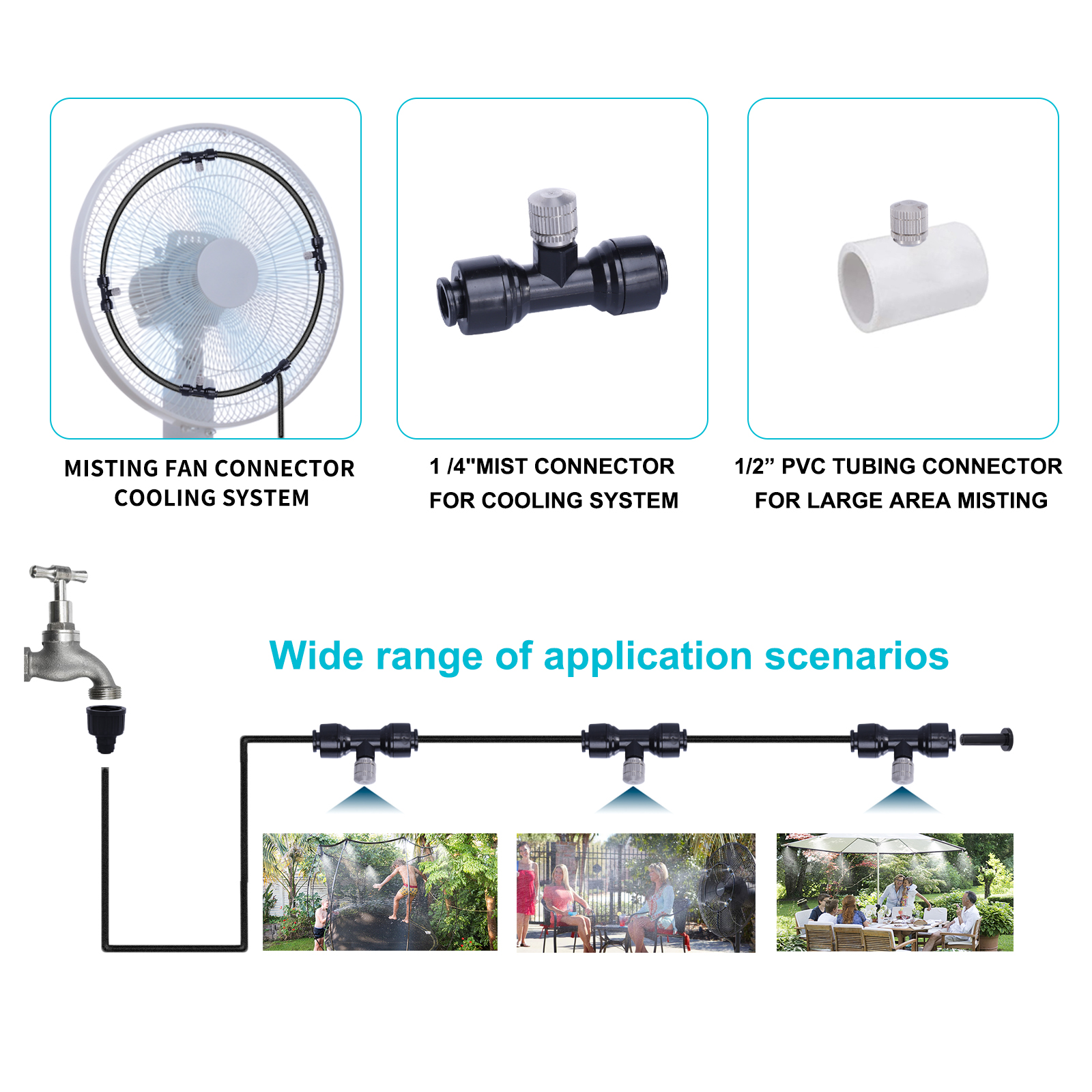 [Effective misting&cooling]: Fogland replace misting nozzle heads produce softer and more comfortable atomized particles, the strong cooling ability can lower the ambient temperature by 3-10℃ or 37-50℉, and the generated flow rate is moderate, not excessively wet.